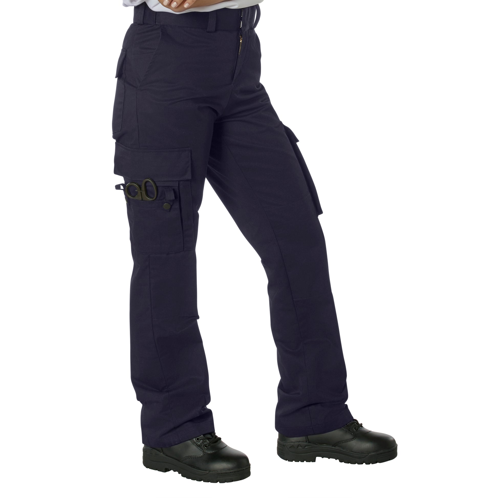 Our Womens EMT Pants are specially designed to provide first responders with the function, comfort, and protection they need on the job. These cargo work pants are built to last through the toughest circumstances and emergencies. In addition, the medical uniform pants are designed with comfort in mind, allowing you to focus on the situation at hand. Built for Performance: These EMS pants provide the flexible toughness you need on the job. With reinforced knees, an expandable / stretch waistband, and low waist style, you'll be able to move quickly while maintaining a professional look. Utility Pockets: Be prepared for anything with the EMT work pants’ 9-pocket design: 2 large bellow cargo pockets (with vertical instrument pocket on the right leg pocket), 2 large-capacity back pockets, 2 front slash pockets, an inner accessory pocket, and an inner pouch pocket for carrying scissors, flashlights, medical gear, emergency supplies, work essentials, and more. Perfect Fit: The EMT cargo pants feature a secure and comfortable waist closure with dual hook & bar fasteners and zipper fly for all-day comfort while out on the job. First Responder-Focused: Rothco carries a massive selection of EMT, EMS, paramedic, and first responder clothing and gear that is specially designed to support the crucial, fast-paced tasks medical professionals face on the job.