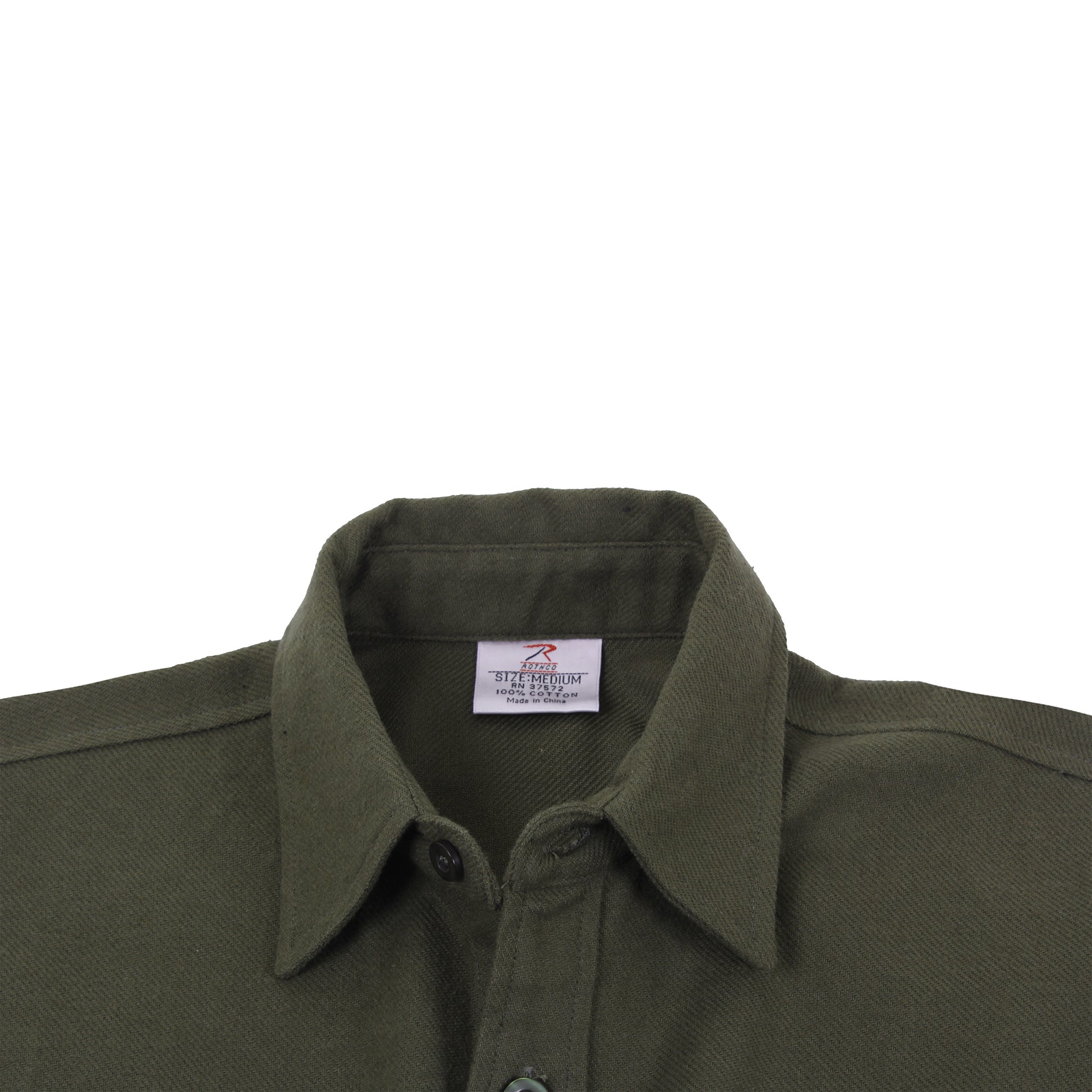 Built for cooler weather and dependable performance, Rothco’s Heavyweight Solid Flannel Shirt delivers warmth, durability, and everyday versatility. Whether worn as a standalone shirt or layered like a jacket, this flannel is designed to handle outdoor demands while maintaining a clean, classic look suited for work, travel, or casual wear. Adventure Ready: Whether you are heading into the mountains or strolling around town, our Flannel Shirts offer unbeatable warmth and comfort. These heavyweight flannels are great for either wearing on their own or layering as a shirt jacket. These tactical flannels are perfect for camping, hiking, hunting, fishing, and other outdoor activities. Rugged Material Construction: The flannel shirt jacket is crafted from heavyweight 8 oz. cotton fabric that is breathable, comfortable, and warm. From shoveling snow to fall cleanup, the durable flannel shirt overcomes any strenuous outdoor activity while providing long-lasting comfort and warmth. Classic Design: The shacket features a 6-button closure, 2 button-down front flap pockets, and single-button wrist cuffs for timeless style and comfortable wear. Both chest pockets are ideal for storing small EDC essentials and outdoor accessories. Care Instructions: For best fit and finish, machine wash cold, non-chlorine bleach when needed, do not tumble dry, and warm iron if needed. Solid Color Styling: Available in versatile solid color options, this heavyweight flannel delivers a clean, no-nonsense look that pairs easily with our BDU Pants, ideal for everyday wear or outdoor use where durability and understated style matter.