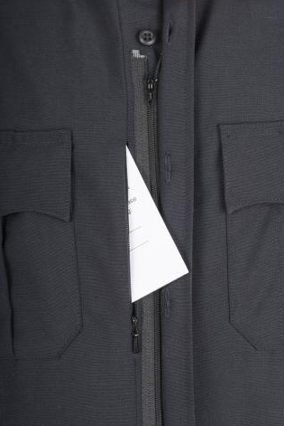 • Channeled pen pocket through flap on left chest pocket; unchanneled pen pocket through flap on right chest pocket