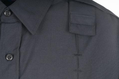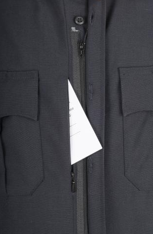 • Channeled pen pocket through flap on left chest pocket; unchanneled pen pocket through flap on right chest pocket
