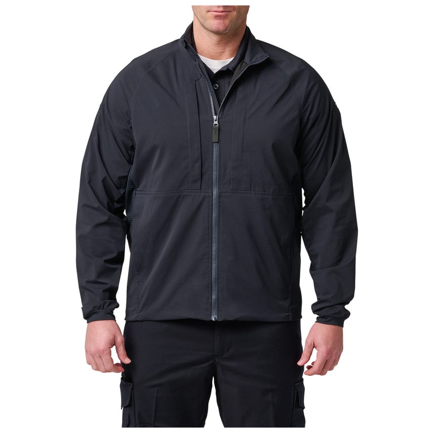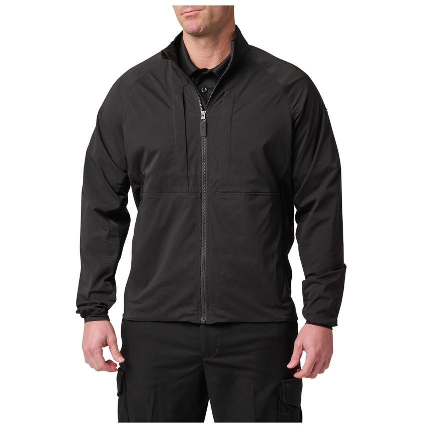 When the schedule calls for sweat-raising activity in blustery wind and chilly temps, our LT Stretch Windshell Jacket is up to the task. The lightweight, duty-length body is constructed from a durable polyester and elastane weave that maintains warmth without compromising freedom of movement. A durable water-resistant finish, backed by a zipper closure with internal storm flap and chin guard, keeps the elements at bay. Add wicking panels constructed from an odor-resistant blend of polyester and elastane in a grid fleece and it's the ideal solution for challenging conditions. Vertical zipper pockets on the chest secure EDC essentials while zippered hand pockets provide protection from Mother Nature. An adjustable hem with internal shock cord and snug-fitting sleeve openings ensure everything stays in place. When the wind is howling, the LT Stretch Windshell Jacket stands at the ready.