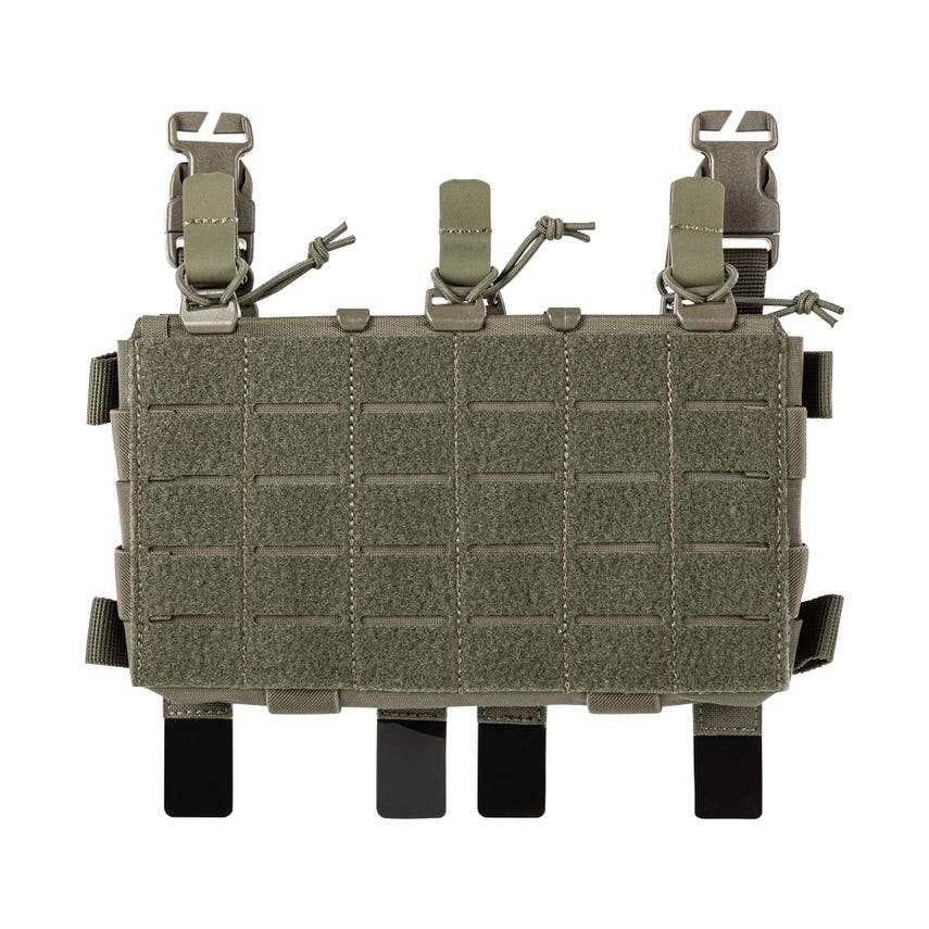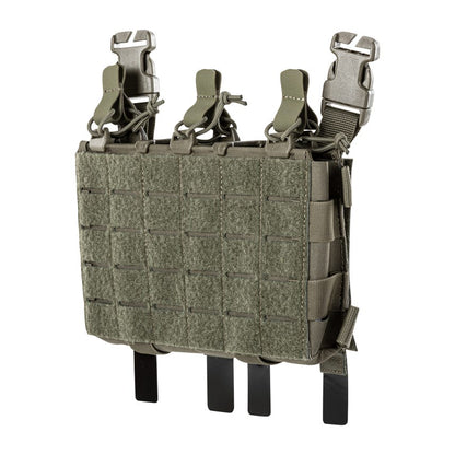 Enable your tactical options with the Modular STS Placard's multi-mission versatility. The attachment system seamlessly integrates with our QR Plate Carrier Base (or other placard-compatible carriers). Laser-cut MOLLE platforms on the front and sides allow for an exceptional range of customization and versatility. The Patent Pending Smart Track System™ is a dual-rail construction with removable and adjustable custom dividers and bungee retention kits to provide a secure fit and retention for contents. The interior of the placard is also loop lined and compatible with hook compatible inserts including the divider, flap and zipper top from the Modular Mini Pouch (56835). Fits three AR/5.56 magazines or two AK/7.62 mags or other equipment.