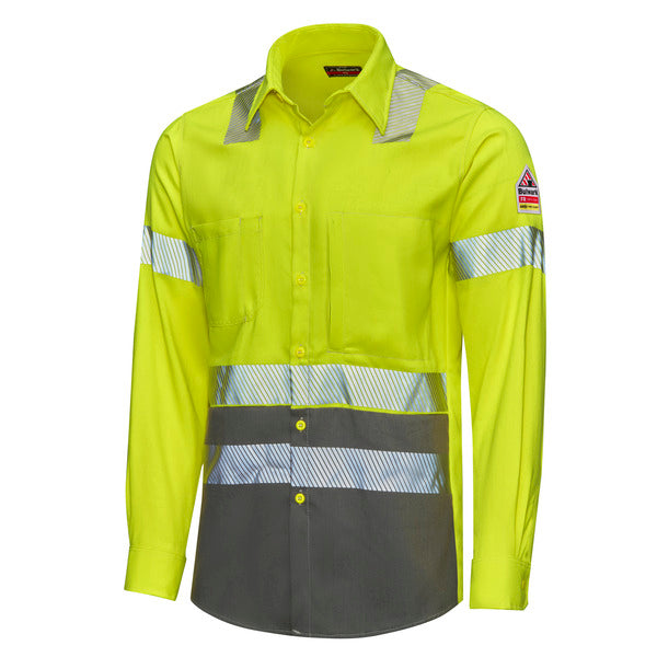 Bulwark Men's Hi-Visibility Color Block Uniform Shirt - Yellow/ Grey