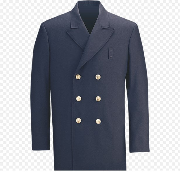 Tailored to meet your needs, this men’s double breasted dress coat is made of 55% polyester and 45% wool. This men’s coat comes with a serge weave and 13-13 ½ oz. weight for cold environments. The jacket comes fully lined and comes with gilt FD buttons, although others are available upon request. The inside of the jacket comes with shoulder pads to add shape to the garment with coupled with the exquisite front tailoring. It has a badge tab and an inside breast pocket for utility. This men’s coat can also have shoulder straps added.