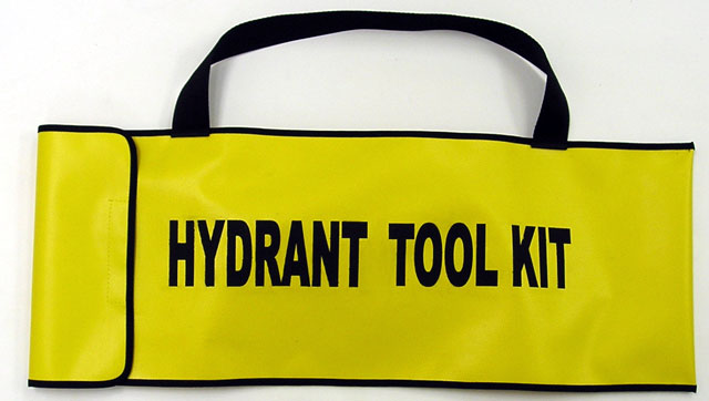 Convenient storage and transport of spanner and hydrant wrenches. Two sets of heavy Velcro straps on back of tool kit easily attach to any size fire hose. *Tools not included