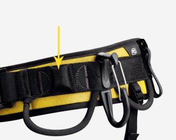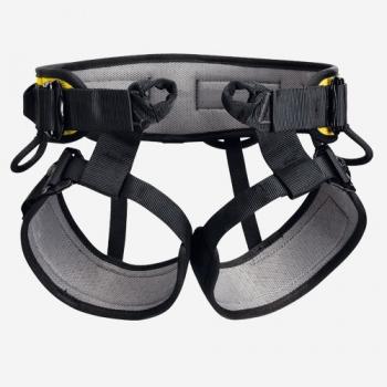 Seat harness, efficient for rope ascents Waistbelt and leg loops lined with breathable perforated foam for maximum comfort