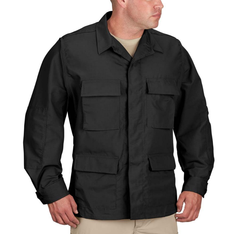 Inspired by our military designs, Propper's Uniform BDU Coat features reinforced construction and an authentic fit. Four front cargo pockets, a covered button front and fused pocket flaps and collar provide a long-lasting professional look. Double-reinforced elbows and felled seams ensure maximum durability on high stress points.